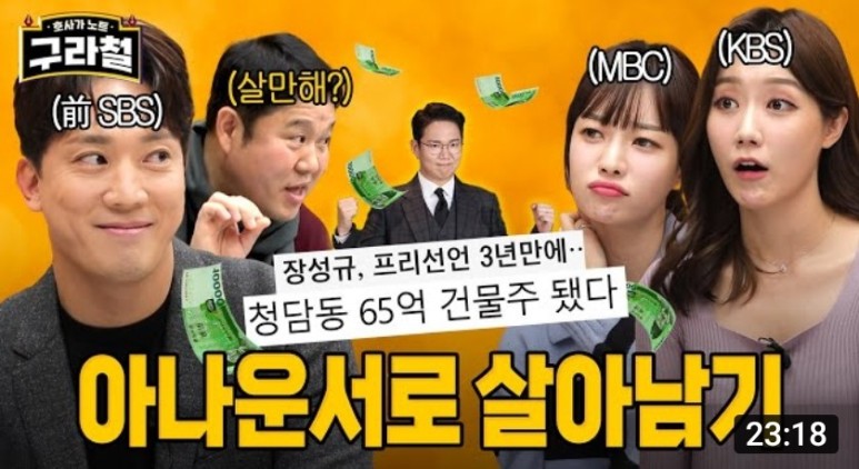 이어 김구라는 김환에게 “사실 옛날 아나운서 중에 재벌 2세와 결혼을 목표로 입사한 친구도 여러 명 있지 않았나, 그게 잘못된 게 아닌가 싶다”고 물었다.