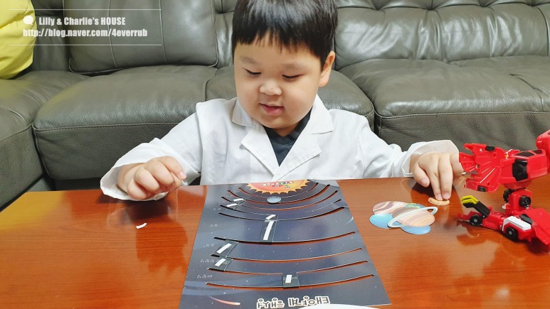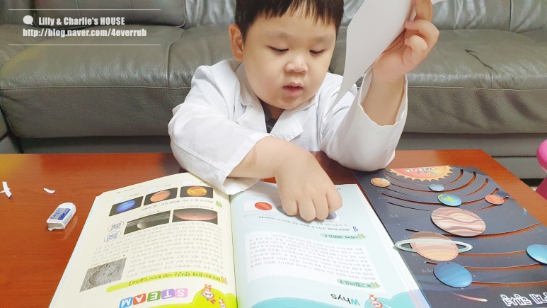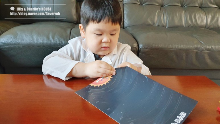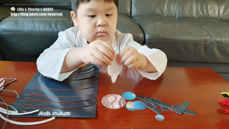 양면 테이프를 붙여야 하는 부분이 있어서 제가 먼저 작업을 해주고 그 사이에 행성 순서를 맞추는 시간을 좀 가졌어요. 상당히 행성의 특징을 알고 있습니다만, 이것은 아무래도 유튜브 콘텐츠의 혜택인 것 같네요. 웃음