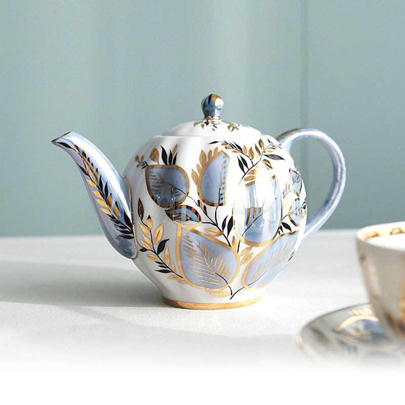색감이 상쾌한 로모노소프의 윈딩 트위그 튤립 티팟입니다.푸른 색의 큰 꽃이 상큼한데다 골드로 장식된 작은 꽃이 고급스럽습니다. 동글동글한 모양이 귀엽고 예뻐요.600ml 용량으로 2인용이면 됩니다.러시아 연방 시대에 제작되었습니다.최상 컨디션제조국 러시아높이 12.5cm 폭 19*11.8cm \88,000