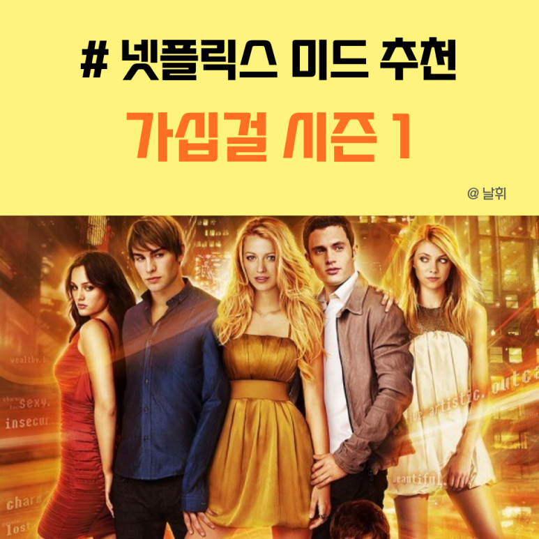 블레이크 라이브리X레이튼 미스터 아메리카/18부작/2007 가십걸 시즌1 고십걸 시즌1 고십걸 요즘 미드필드 너무 많이 봐서 서양드라마도 슬슬 만지고 싶어서 넷플릭스를 보고 있었는데… 넷플릭스의 미국드라마 추천 가십걸 이 네플에 있네.