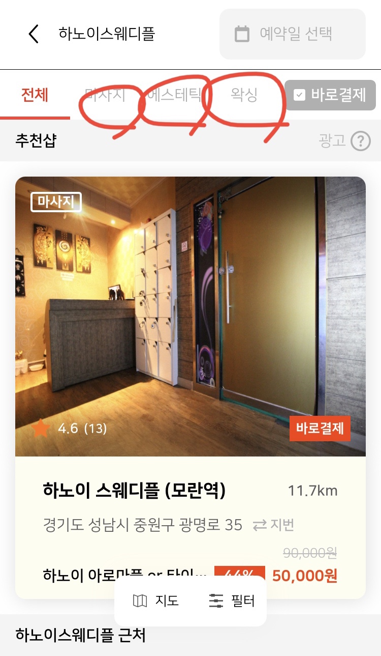 전국 최대라고 어플 소개로 봤는데 역시 선택의 폭이 넓어ㅋㅋ내 주변에 위치한 샵까지 가능!