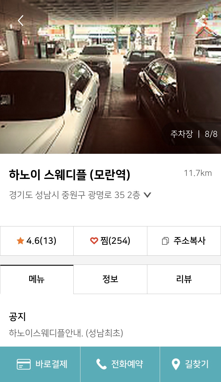 모란역 하노이 스웨디플 위치는 모란역 12번 출구에서 도보로 5분 거리에 위치하기 편한 분, 그리고 개인적으로 중요하게 생각하는 주차장이 구비되어 있다.