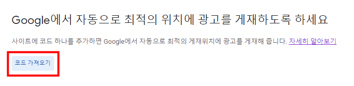 코드를 얻으면 새로운 창이 뜨는데, 그 코드를 복사해서 승인 시처럼 ‘스킨 편집’→ ‘html 편집’에 들어가서 ‘!–구글 광고—‘라는 주석을 붙이고, 코드를 복사했습니다.