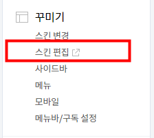 모든 공란을 채우고 나면 코드가 하나 주어지는데 그 코드를 복사한 후 자신의 티스토리 설정에서 왼쪽 목록 중 [꾸밈]-[스킨 편집]에 들어가면 오른쪽 상단에 [html 편집]이 있습니다.