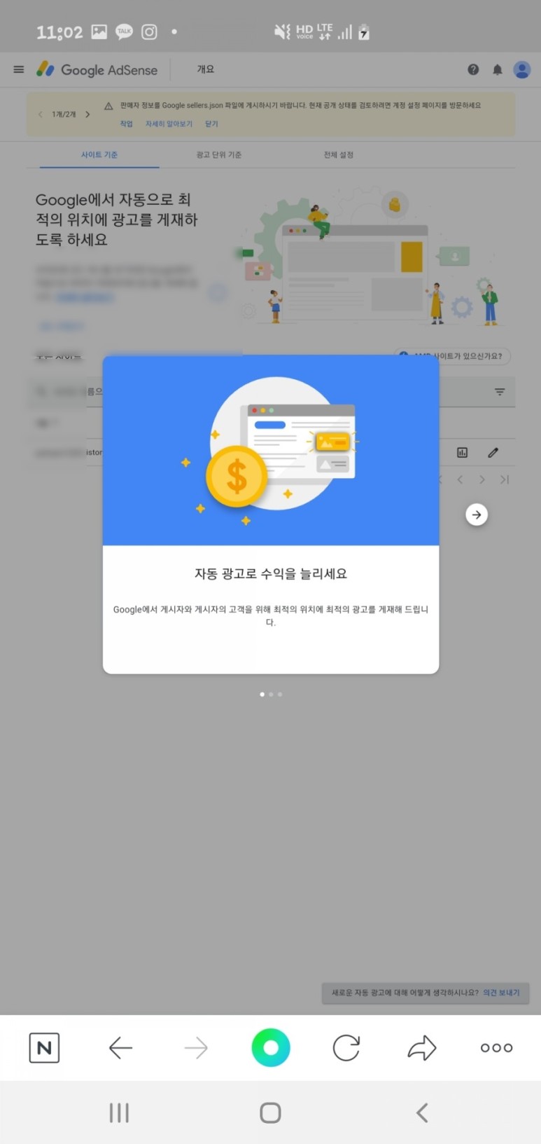 구글 어드센스 광고 설정 계정 시작을 누르신 후 계정을 활성화 시키니 가슴이 두근두근 뛰었습니다.드디어 머니파이프를 하나 더 구축한 것 같아서 너무 설레요