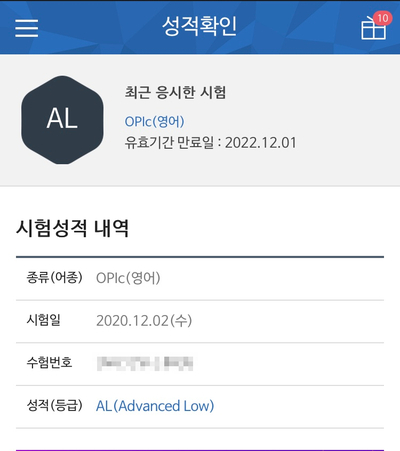 결과는 AL5일로 점수가 나왔다!부산까지 헛걸음한건 아닌지 걱정했는데 다행이야!
