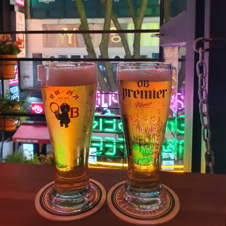 Fama님을 배경으로 한 컷 매일 테라만 먹었는데 OB라거는 오랜만이었어