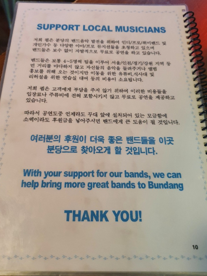 정자역에서 저녁식사로 소주 한잔하고 생음악을 들으며 맥주 한잔 생각나면 릭스펍에 오면 좋겠다.
