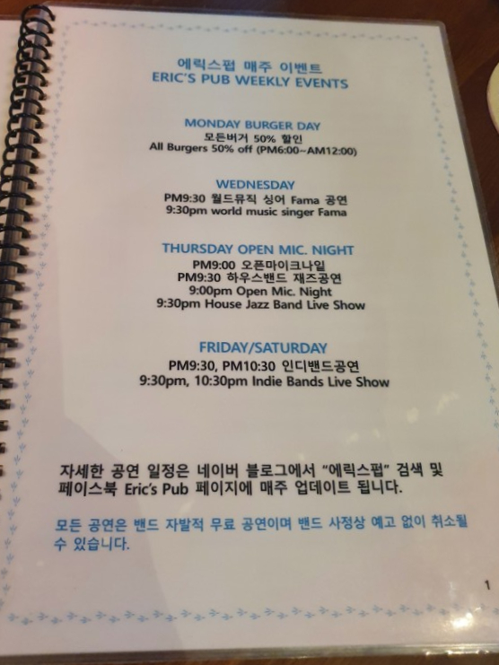 분위기도 그렇고 이름도 에릭 펍이고 고시국인데 외국인 분들도 꽤 많이 오셨어.힙한 느낌을 찾으신다면 추천~