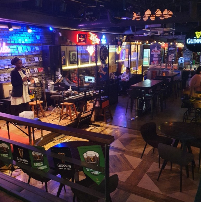 앉자마자 공연이 시작된 라이브 음악이 있는 줄 모르고 들어왔는데 오늘의 초대 가수 Fama 씨!
