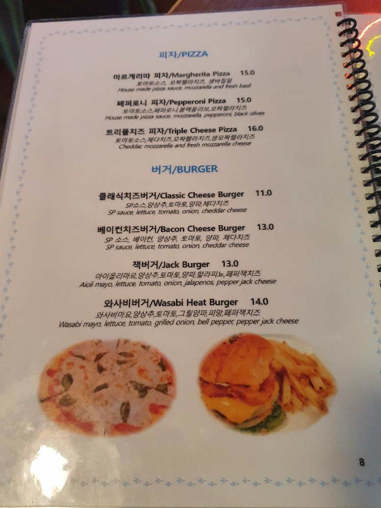 거기에 피자 햄버거 플래터 같은 음식도 있다.우린 맥주 2병 시킨다!
