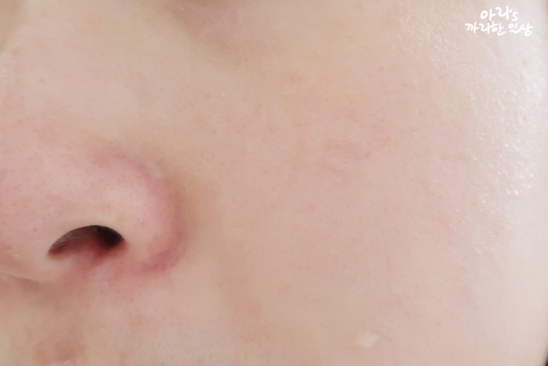 결에 따라 닦아낸 상태입니다.이니스프리 화산 송이 모공팩 사용 후 이를 닦아내면 피부 사이에 남아 있는 잔여물도 정돈되어 피부가 편안해집니다.