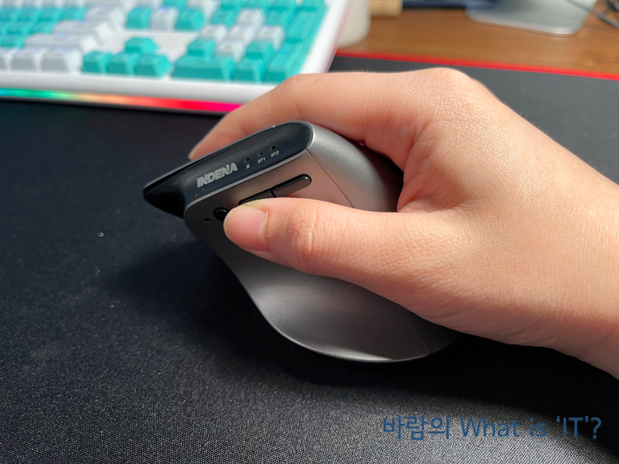 컴퓨터를 장시간 사용하는 분들이라면 손목이 뻐근한 느낌을 받으신 분들이 계실 겁니다. 오늘은 이러한 증상을 예방하는 버티컬 마우스, 인디나 IND-M6 18GB 모델을 소개합니다. 총 3개의 장치와 무선으로 연결할 수 있는 것은 물론, 무소음 스위치를 사용하여 조용한 사무실이나 도서관에서도 사용하기 쉬운 마우스입니다.