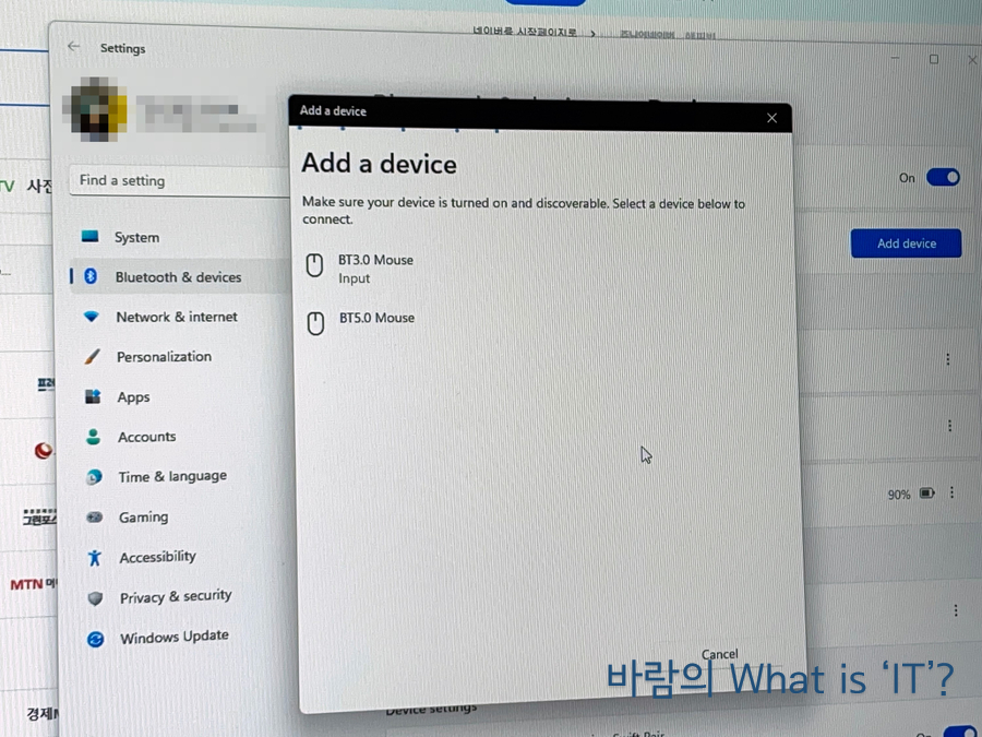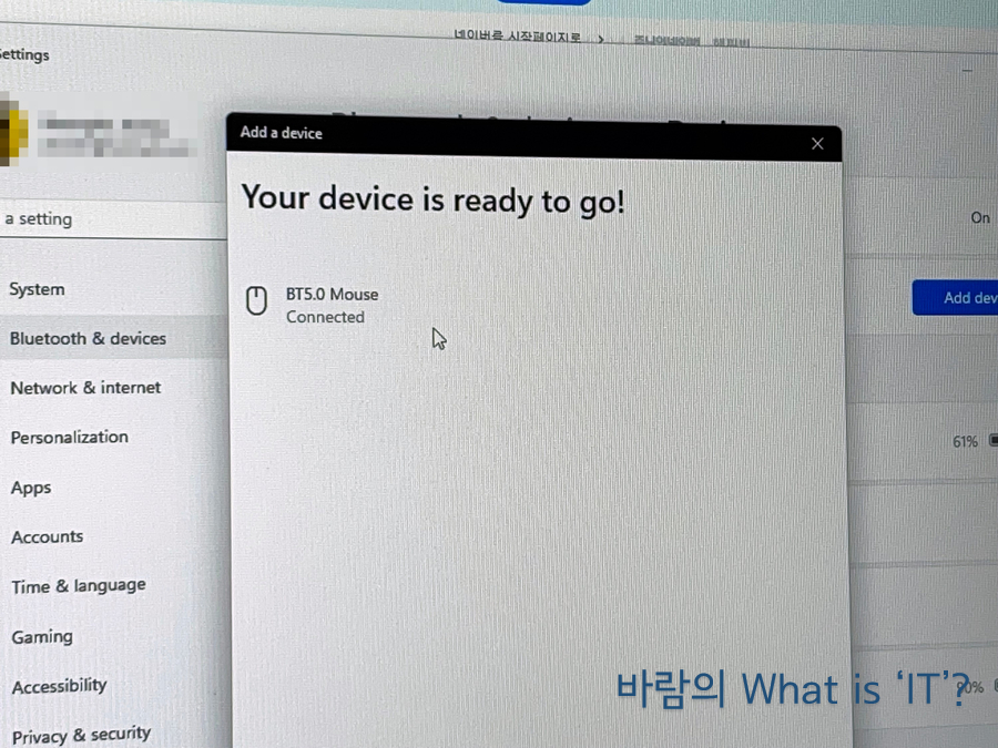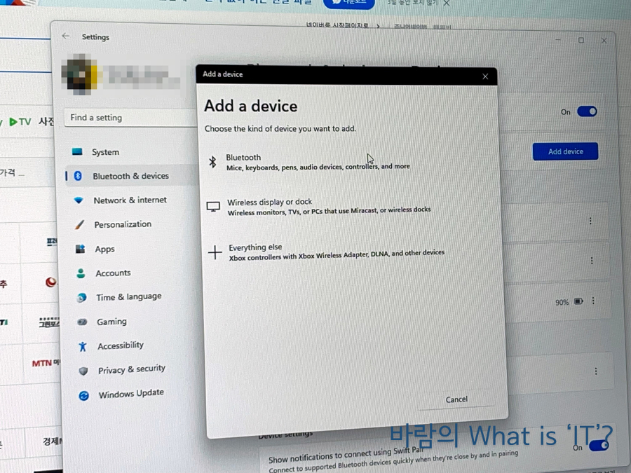 블루투스 연결은 더 간단합니다. 아까 누른 모드 전환 버튼을 눌러 블루투스 모드로 변경하고, 또 이 버튼을 3초간 누르면 LED가 깜빡이며 페어링 모드로 들어갑니다. 이때 접속할 기기의 블루투스 메뉴로 들어가 새로운 기기의 추가 버튼을 눌러 페어링을 진행하십시오.