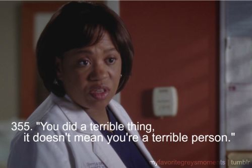 - Youdidaterriblething. It doesn’t mean you’re aterrible person. 너는 몹쓸 짓을 했다.그렇다고 해서 네가 무서운 사람이란 건 아니다.