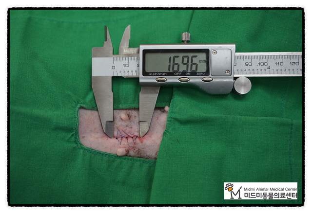 보리 자궁축농증 수술 전후 사진입니다.정말 최소 절개 수술로 절개, 봉합은 1.696 센티미터로 만들었습니다.
