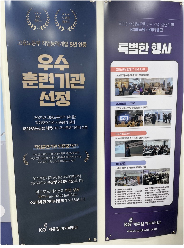 졸업예정자나 미취업자들을 위한 국비지원도 하고 있기 때문입니다.조건에 해당하는 경우 자기부담금 0원으로 시작할 수 있습니다.