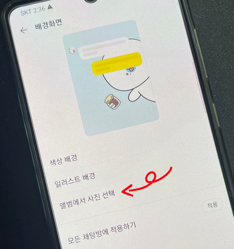 카카오톡 배경화면 변경, 크기는 이렇게!