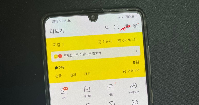 일단 카톡에 들어가면 설정이 진행이 되는데 따라하기 쉽게 화살표 요금을 표시하도록 하겠습니다