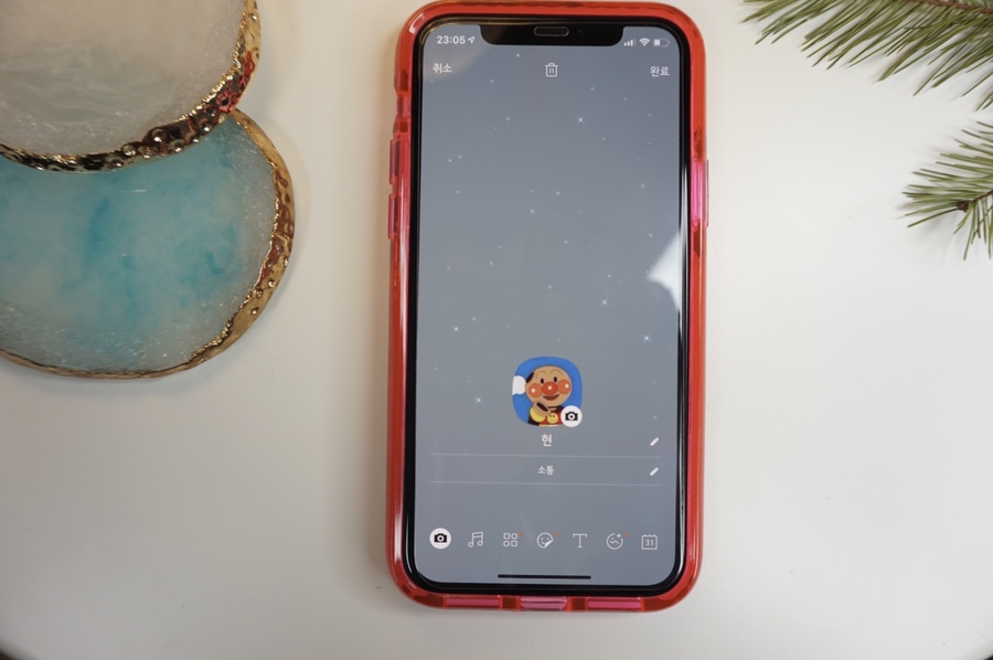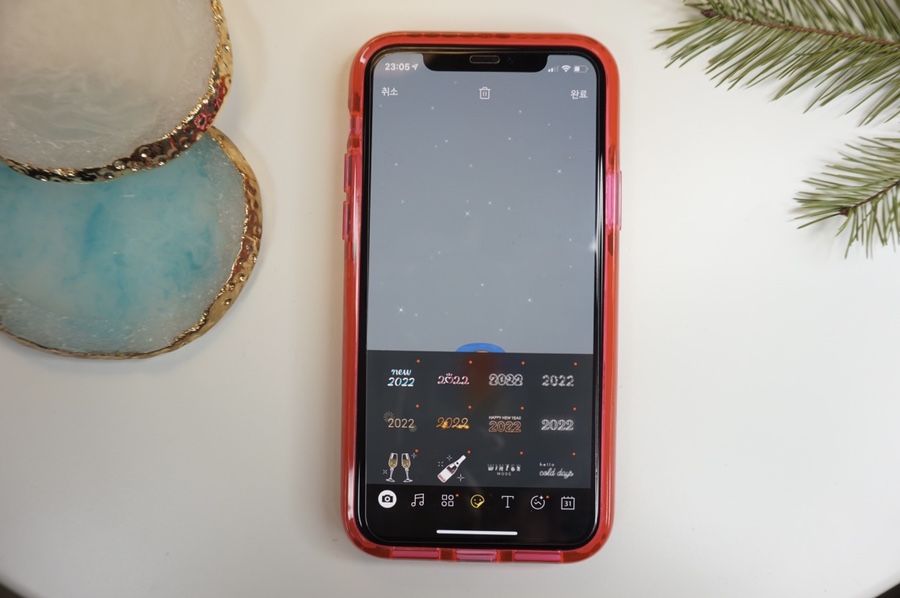 두 번째 누르면 아이콘이 몇 개 나와 카메라, 음악, 문자, 이모티콘, 달력 등 무엇을 먼저 꾸밀지 고민했다. 새해니까 신나는 노래로 해놔도 좋을 것 같았다. 예비 엄마라면 출산일 기록, 커플이라면 달콤한 100일, 1주년을 디데이로 만들어 놓아도 좋다. 나중에 보면 못알아보고 찾을 수 있어.