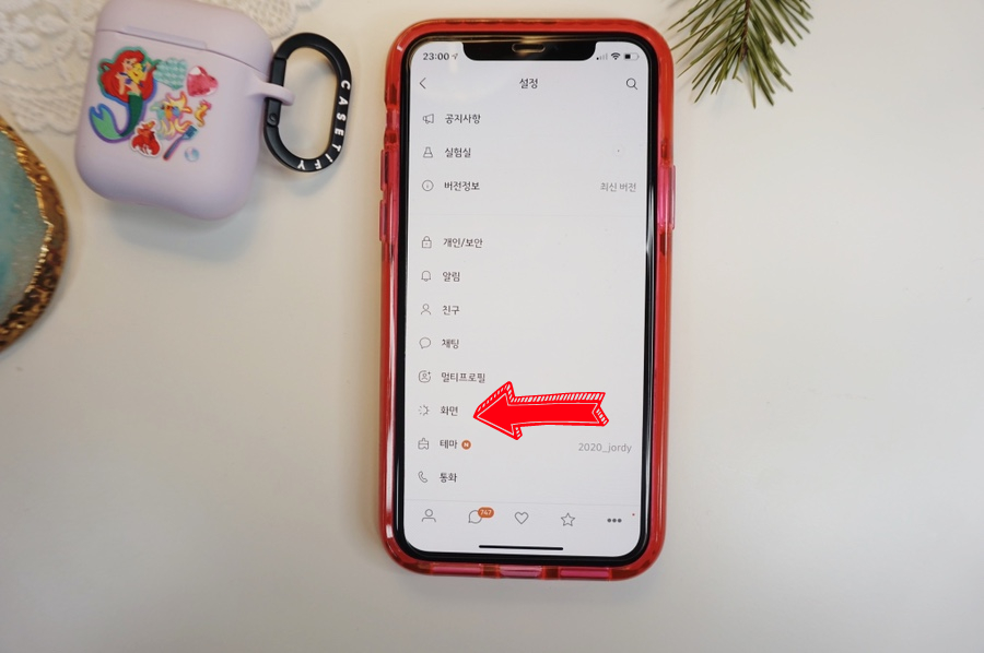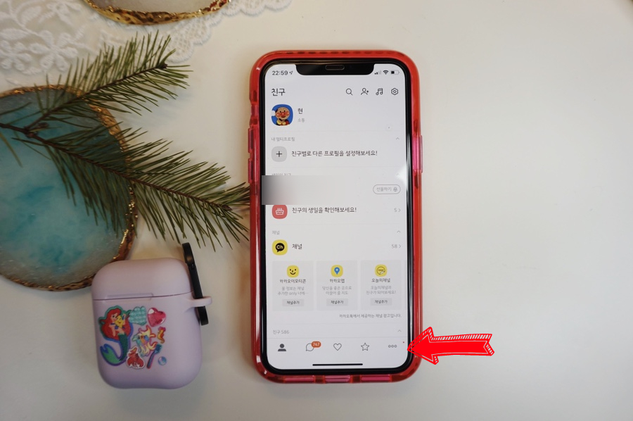 처음에 들어가면 채널, 친구들이 보인다. 하단을 보면 세 개의 점이 보인다. 여기에 들어와서 톱니바퀴 형태의 설정으로 접속한다. 화살표 방향으로 클릭하면 어렵지 않게 들어갈 수 있다. 요즘은 페이, 메일, 달력 등 다양한 옵션이 들어와 어디에 들어가야 할지 모르겠다. 너무 많아서 더 심플한 옵션을 찾을 수 없다고나 할까.