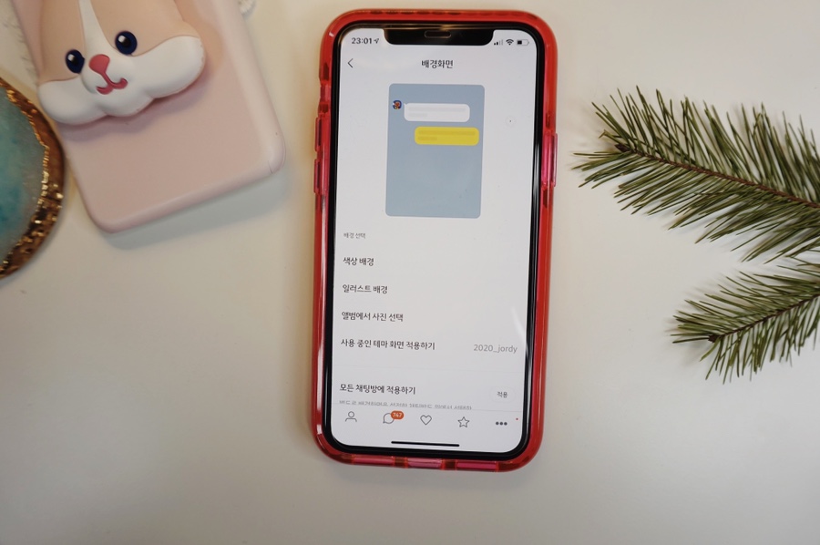 카카오톡 배경화면 변경은 화살표 모양으로 들어가면 된다. 그러면 크기와 글씨체, 방향을 정할 수 있다. 우리는 두 번째로 들어간다. 거기서 색, 일러스트, 앨범 중에서 골라 사용해 볼 수 있다. 만약 기존의 파일이 그립다면 사용 중인 테마로 적용해도 된다. 바뀌기 싫다면 기존 것을 써도 좋지만 재정비된 모습을 보이려면 다른 색을 선택해도 된다.어떻게 꾸미지?아래 그림만 봐도 놀랄 만큼 색깔이 다양하다. 웜톤, 쿨톤이 있듯이 메신저에도 똑같이 존재하는 줄 알았다. 나는 무난한 것을 선택하고, 일러스트는 보기만 해도 귀여운 것으로 하기로 했다. 조르디, 콘, 어피치 캐릭터들이 나와서 그런지 친근하고 다 해보고 싶을 정도로 개성이 뛰어났다. 그만큼 잘 만들었다.