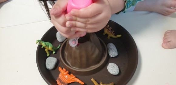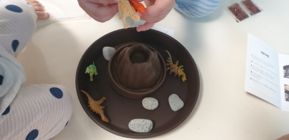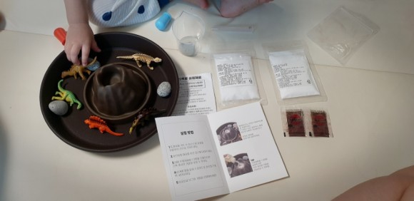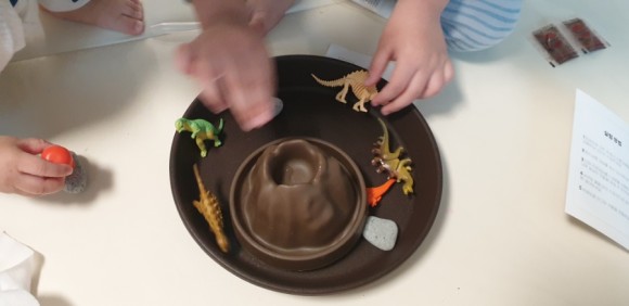 - 트레이에 공룡/돌을 배치하는 화산 주위에 생명력(?)을 가하는 공룡을 배치합니다.