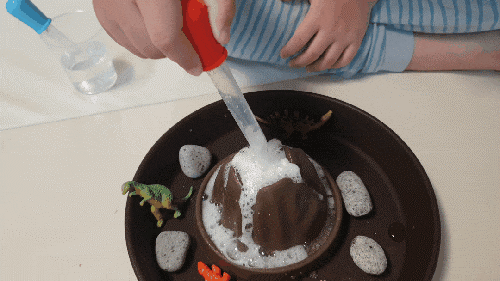 4. 물을 붓는 화산 속에 스포이트를 이용하여 물을 떨어뜨립니다.