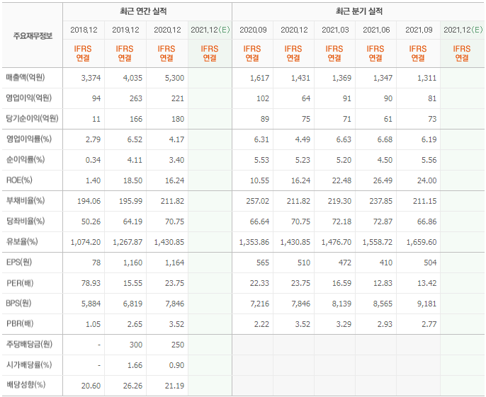 - 2021년 9월 전년 동기 대비 연결기준 매출액은 4.1% 증가, 영업이익은 67.3% 증가, 당기순이익은 117.1% 증가. 비용 증가폭은 커졌지만 매출 증가와 원가율 감소로 영업이익과 당기순이익은 모두 증가했다. 이 회사는 주요 파트너인 동진세미켐, LG화학, 동우파인켐, KCC 및 삼화페인트 등 글로벌 기업에 케미칼 제품 및 상품을 안정적으로 공급하며 시장 확대를 위해 노력하고 있다.