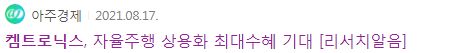 정부는 2027년까지 자율주행 상용화에 총 1조974억원을 투입해 하반기부터 C-ITS를 구축할 계획이다. 켐트로닉스는 V2X(자동차에서 모든 것에 걸친) 하드웨어 입찰 후보 1순위로 혜택이 기대된다.