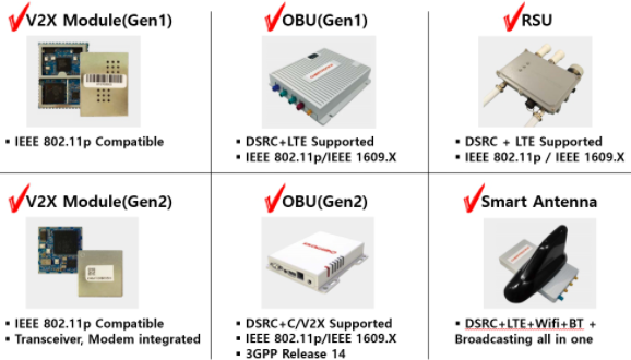 이외에도 저희는 켐트로닉스는 국가통합인증마크(KC), 중국자동차기술연구센터, 한국정보통신기술협회, 한국자동차연구원 등 국내외 기관의 V2X 인증을 다수 받았다.