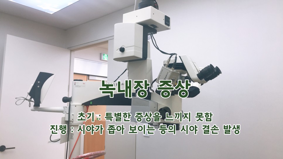 이처럼 압력이 정상 범위를 벗어나 높아지면 눈의 내부 조직에 압력이 가해지게 되어 문제가 나타나고 눈 속의 가장 약한 조직인 시신경에 문제가 생기면서 심한 손상을 입게 됩니다. 하지만 앞서 언급한 기계적 요인만으로 발생하는 질환이 아니라 평소 혈액순환이 제대로 되지 않는 경우에도 시신경 손상이 진행돼 문제를 유발할 수 있으며 유전성향이 강하기 때문에 이 부분도 조심하는 것이 좋습니다. 그러면 이런 분들이 알아두셔야 할 녹내장의 증상에 대해 알아보도록 하겠습니다.