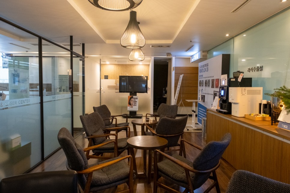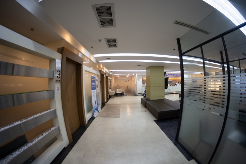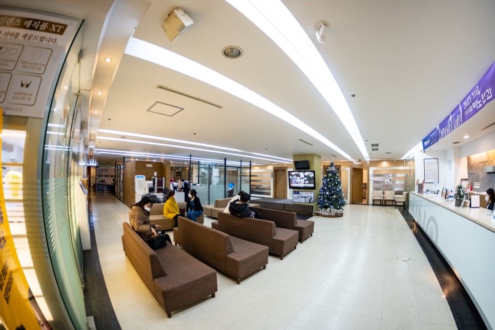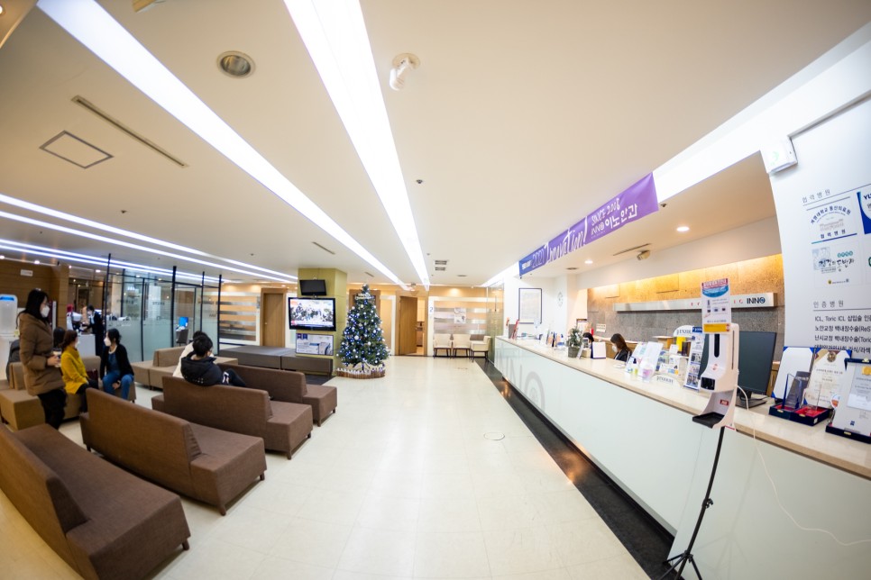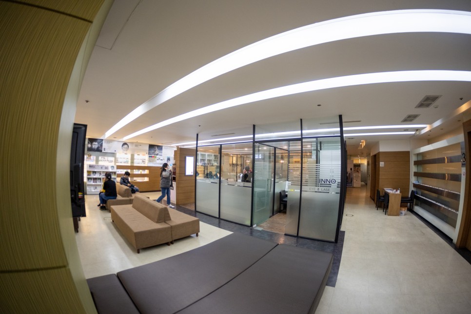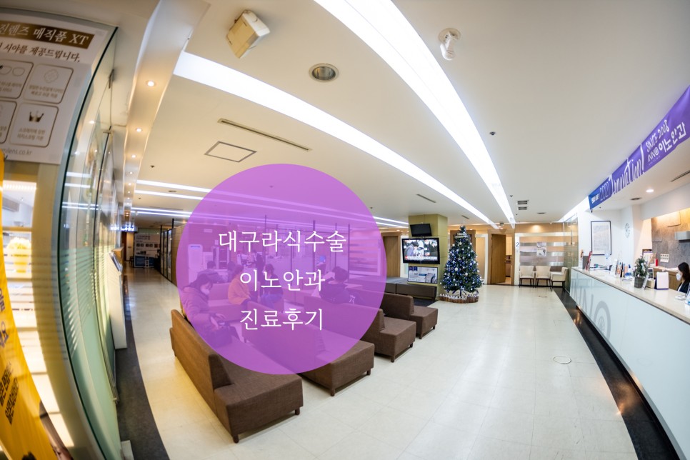 안 그래도 넓은 병원인데 광각 렌즈로 찍어보면 더 넓어 보이는 병원 전경입니다그때가 크리스마스 전이었던 것 같은데, 해가 바뀌고 한달 반이 지난 지금에서야 포스팅을 하게 됩니다.1년 전만 해도 컴퓨터 화면이나 스마트폰 글자를 읽는 데 아무런 불편이 없었지만 몇 달 전부터 급격히 보이지 않아 불쾌지수가 대단했습니다.거주지가 동구이기 때문에 심리적 거리가 달서구 상인동에 있는 이노안과에 가기가 쉽지 않습니다.실제로 운전하고 가면 앞산터널에 가면 20분 안팎이지만 시간거리가 물리적 거리와 심리적 거리보다 훨씬 짧기 때문에 한번 가면 크게 부담되는 거리는 아니었습니다.
