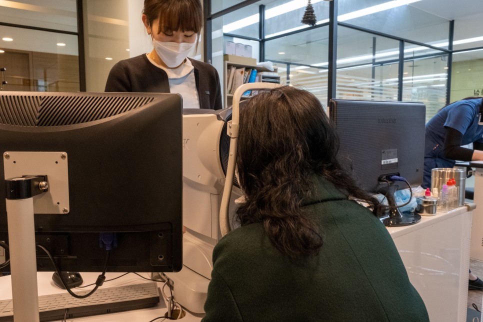 김여사님은 병원에 갈 때 치과를 제외하면 꼭 같이 다니자고 하는데 뭔가 진료 상담 후에 이해가 가지 않는 부분에 대해 다시 이야기하기를 좋아하는 성격입니다.가까운 거리에서 문자나 화면이 잘 보이지 않는 탓에 눈에 관한 모든 검사에 시간이 다소 걸렸습니다.