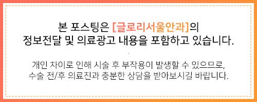 백내장 증상으로 인한 불쾌감을 원활하게 개선하기 위해서는 개선 전에 반드시 체계적인 눈 검사를 받는 것이 좋습니다.각막, 수정체, 망막까지 꼼꼼하게 체크할 수 있도록 70여 가지의 다차원 진단을 먼저 받아야 하고, 각자의 직업, 취미, 연령 등 눈을 가리고 있는 생활 습관이나 환경적 요소까지 고려하여 자신에게 적합한 치료 방향을 제시할 수 있는 안과를 찾는 것이 중요합니다.경험과 노하우를 많이 가지고 있는 의료진이 있는 곳이라면 치료 후 만족도가 더욱 높아질 수 있으니 이 부분도 꼭 참고하시기 바랍니다.