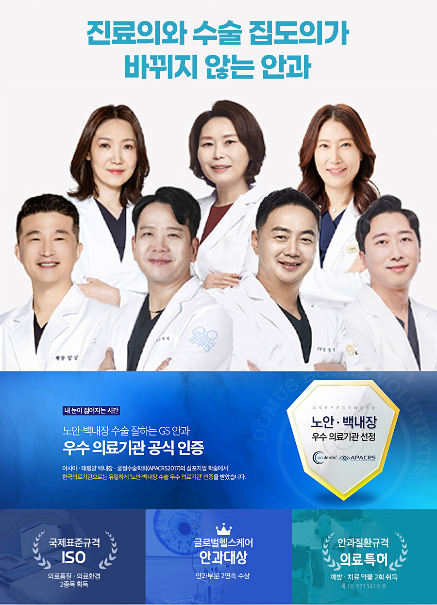 처음 진료를 받는 분과 내 눈을 직접 집도하는 사람이 달라지면 마음에 큰 부담이 생겼어요. 하지만 진료 의사와 수술 집도의가 다르지 않은 안과를 선택하면 그에 대한 부담을 덜 수 있어 믿고 자신의 안구를 맡길 수 있었습니다. 노안과 백내장으로 우수 의료 기관으로 선정된 안과에서 진행하면 좀 더 편한 마음으로 내 안구의 건강을 맡길 수 있었습니다. 진료를 받은 사람과 집도의가 바뀌면 처음 본인과 이야기한 것이 잘 전달되지 않을 수 있고 여러 가지 문제가 생길 수 있기 때문에 반드시 변하지 않는 안과를 통해 진행하여 건강한 안구를 확보할 수 있어야 했습니다.