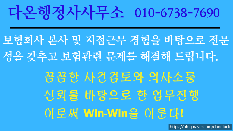 보험사와 보험계약을 체결하여 유지하던 중 보험금 부지급, 불완전판매, 보험계약해지, 실효, 부활 등의 과정에서 보험사와 발생한 다툼에 대해 금감원 또는 한국소비자원에 분쟁조정을 신청하여 전문가들의 판단을 받아 분쟁을 해소할 수도 있습니다. 이와 관련된 일련의 업무를 대행하고 있으며 지방에 계신 분들도 유선상담 후 우편, 이메일, 팩스를 통해 불편함 없이 업무진행이 가능하오니 전화를 주시면 간편하게 상담하실 수 있습니다.