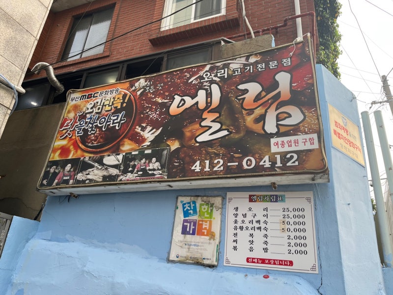 애림오리고기집 위치 : 부산광역시 영도구 태종로384번길 5 전화 : 051-412-0412 영업시간 : 월~토 11:30 ~ 22:30 매주 일요일 휴무일