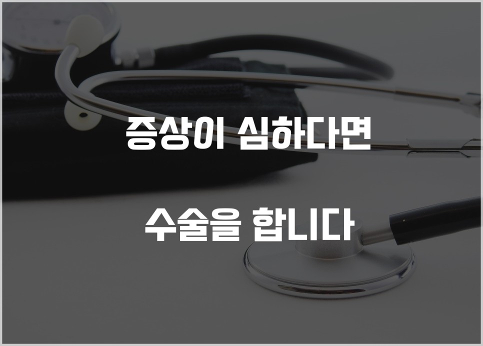 시간과 장소가 관계 없기 때문에 간편하고 수술보다는 부담이 적지요.하지만 중증도가 심해 일상에 큰 영향을 줄 정도라면 수술적 치료가 바로 이뤄져야 합니다.