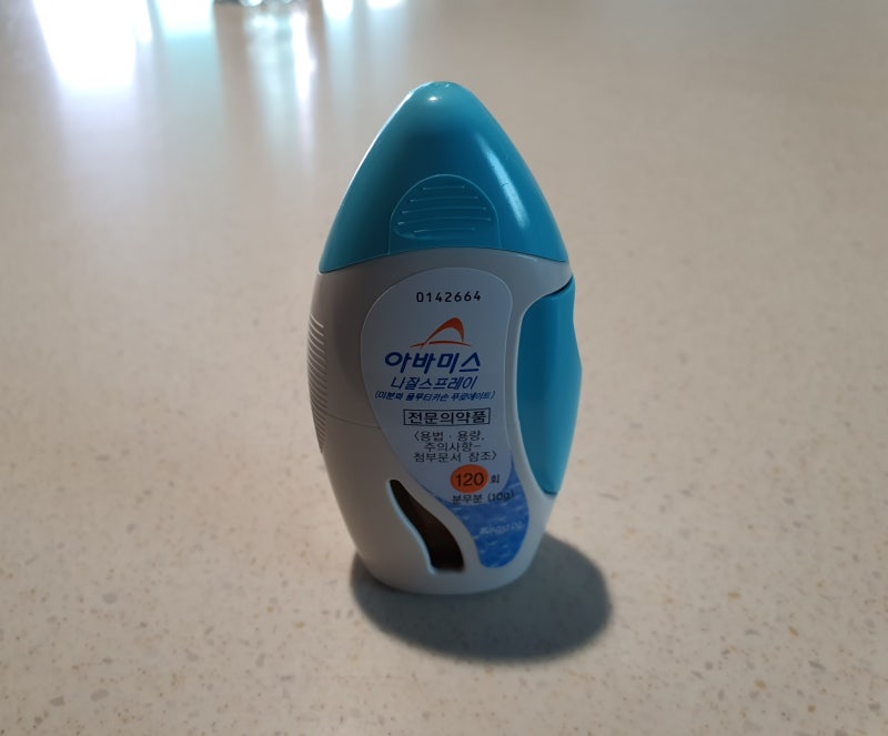 ④반대쪽 콧구멍도 마찬가지로 분무합니다.분무할 때는 숨을 좀 참은 상태에서 분무후에는 코로 숨을 가볍게 들이지 말고 쉬어 입에 담습니다.