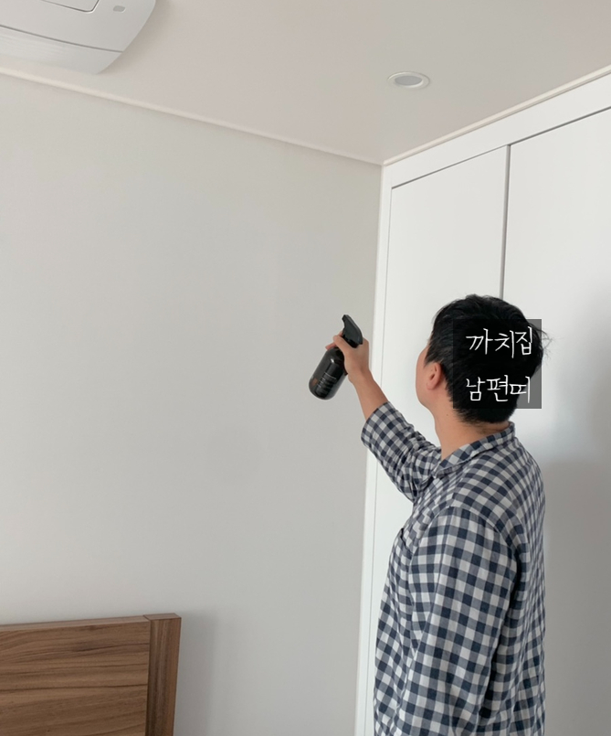 벽지 구석구석!그리고 천장까지! 빠짐없이 뿌려줬어요.