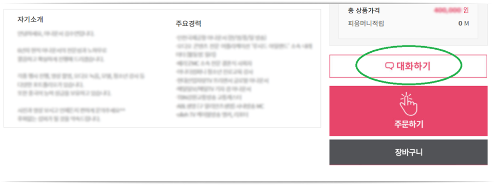 서비스 페이지를 누르면 주요 경력이나 이력이 있고 ‘대화하기’ 버튼을 누르면 다이렉트로 소통이 가능해 편리했다. 가격도 합리적이라는 느낌이 들었는데 왜 그런지 이리저리 살펴보니 그 이유를 알 수 있었다.