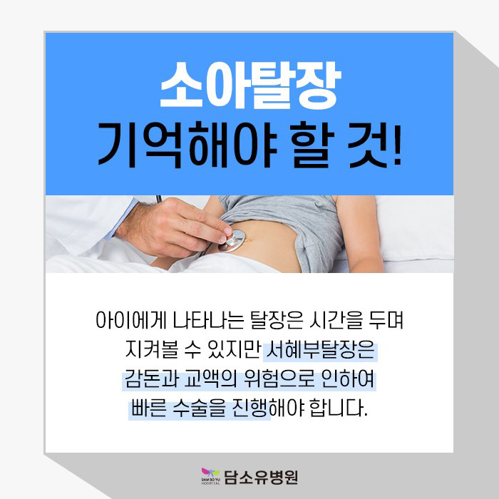 아직 아이가 어려움을 겪고 있다면 이런 방법과 함께 실력 있는 의료진을 만나면 소아탈장 걱정 없이 회복할 수 있다는 것을 기억하시기 바랍니다.여러 가지 이유로 방치하면 합병증에 노출되어 자녀가 위험할 수 있다는 점도 명심해야 합니다.가장 주의해야 할 부분으로 통증을 느끼지 않고 요철이 생겼다 반복되는 증상을 보였다고 해서 가볍게 생각하거나 자연적인 치유를 기대해서는 안 되는 질환이에요.