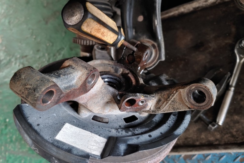 운전석 허브너클 분해..드라이브로 열고 로어암 분해합니다.