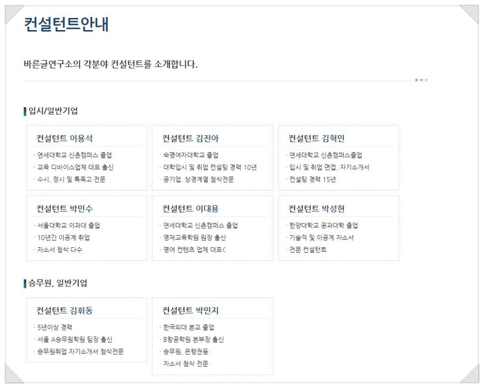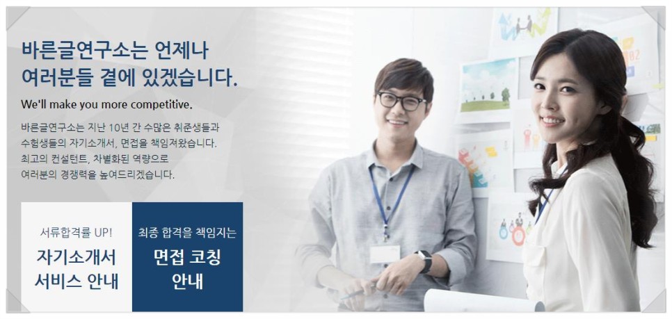 오늘 알려드리고 싶은 곳은 바른글연구소에서 자기소개서 등 지원서류에 필요한 내용을 작성해 주는 곳으로 각 분야의 전문적인 분들이 여러분의 경험, 경력 등을 분석해서 지원하는 회사에 맞게 작성하는 회사입니다.