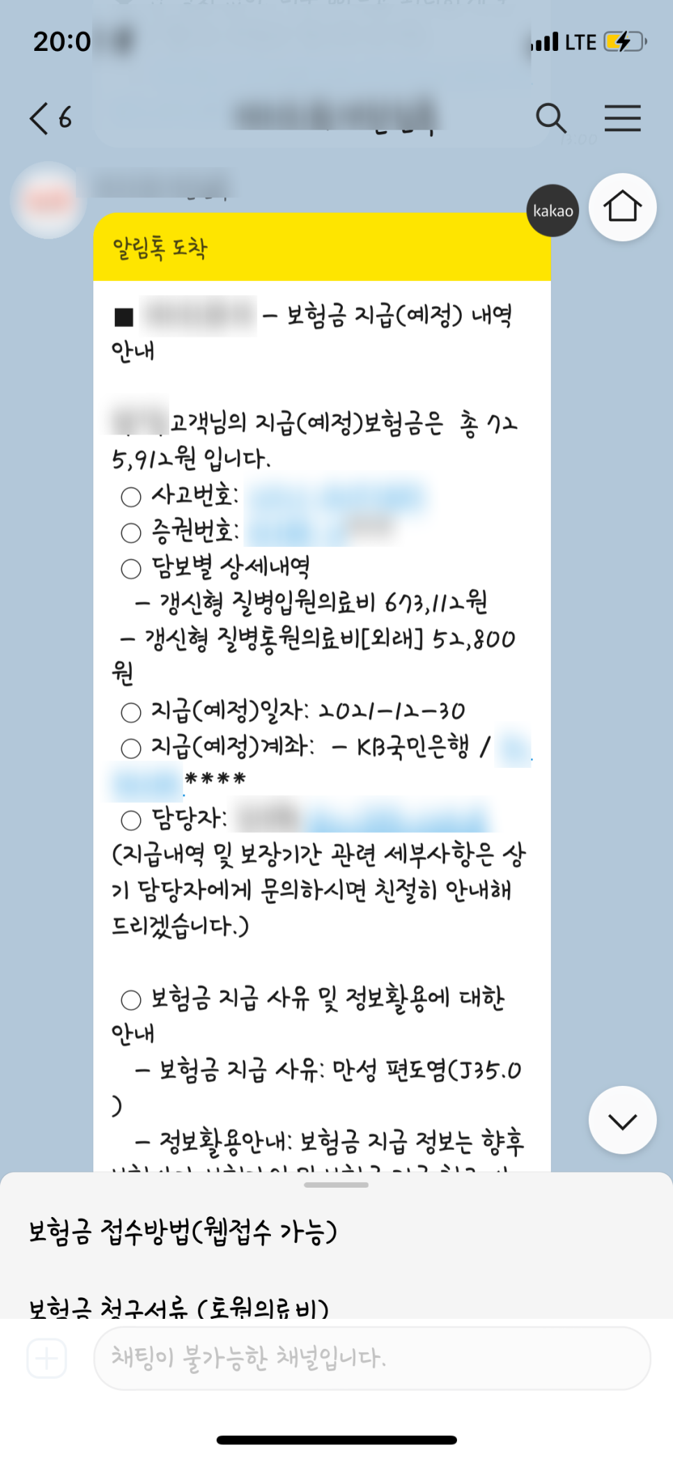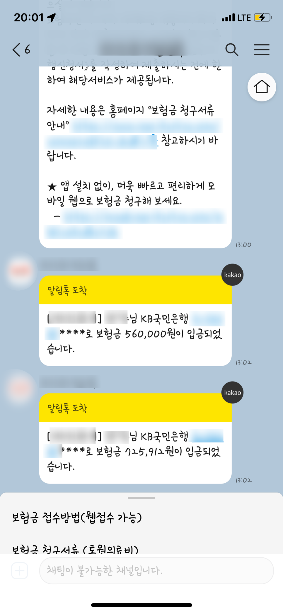 청구금액이 100만원 이상이여서 우편 또는 직접접수를 해야할 상황이었으니까..12월 29일 대리점에 방문하여 직접 접수하였으며, 12월 30일 담당자 배정(오전 11시 37분경) 및 보험금 지급(오후 1시)까지 완료하였습니다. 🙂