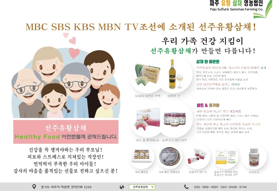 선주황삼채에서는 직접 재배하여 만든 국산 레드비트국, 레드비트환, 레드비트분, 레드비트절임 레드비트과자, 레드비트차, 비트시럽, 히카마와 비트즙 등 다양한 상품으로 선택의 폭이 넓습니다.