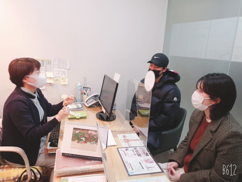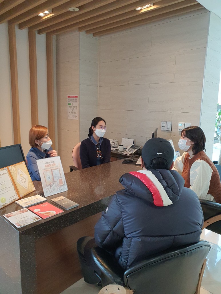 조리원 상담실장에게 서비스와 시설에 대한 전반적인 설명을 집중적으로 경청하고,