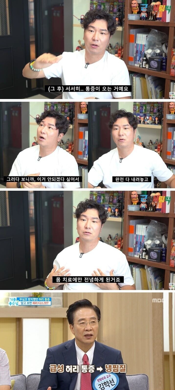 만약에 방송 중에 못 찾으셨다면 힘드셨을 거예요. 서서히 통증이 오더라고요. 몸이 아프니까 일도 못하고 회의를 하려고 해도 몸이 아프니까 아픈 것만 걱정되잖아요. 그러다 보니 안 되겠다는 생각에 완전히 내려놓고 몸 치료에만 전념하게 된 거죠.