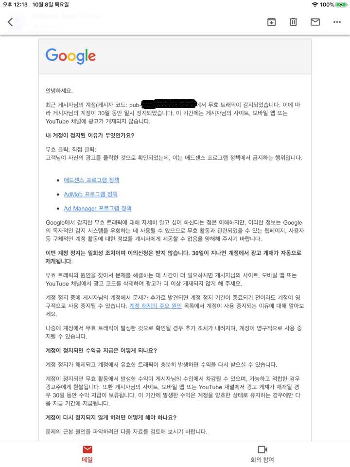 안녕하세요 TSOL입니다구글센스 광고가 붙어서 정지 드셔보신적 있으세요?정지 사례를 한 건 가져와 봤어요.